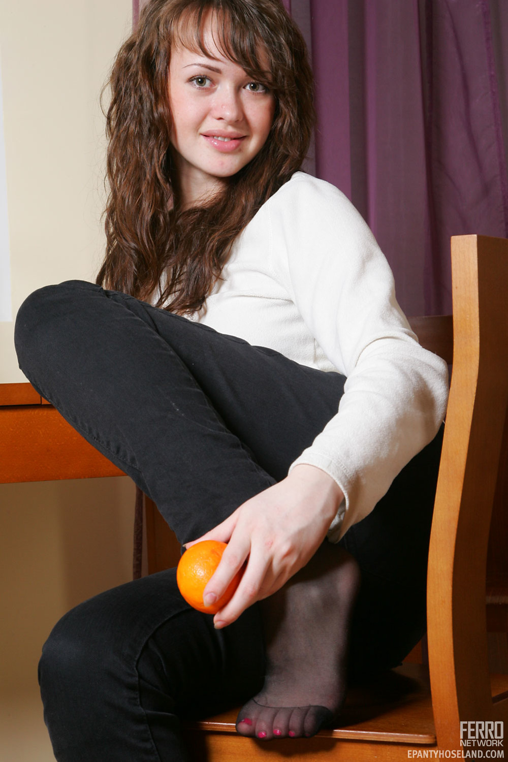 Beautiful teen Milly C in sexy black pantyhose