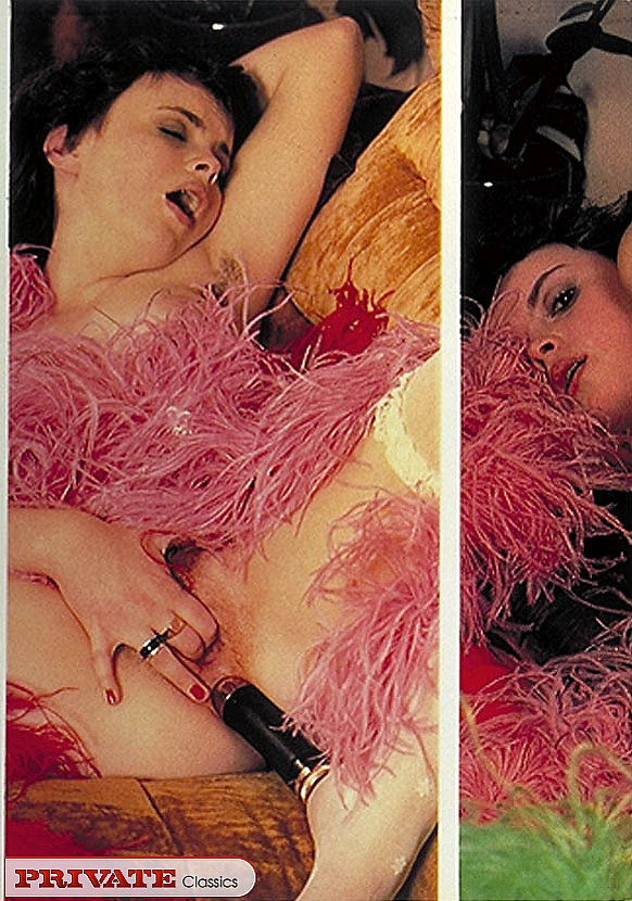 This nasty retro brunette girl playing with this big dildo