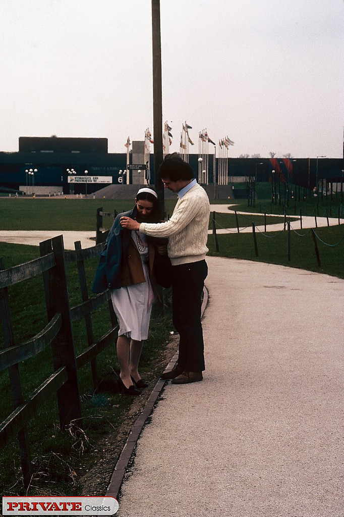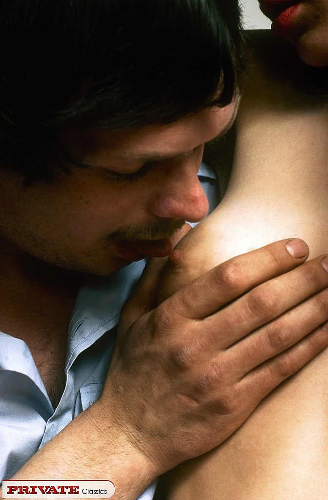 Classic hot brunette gets a pearl necklace from horny man