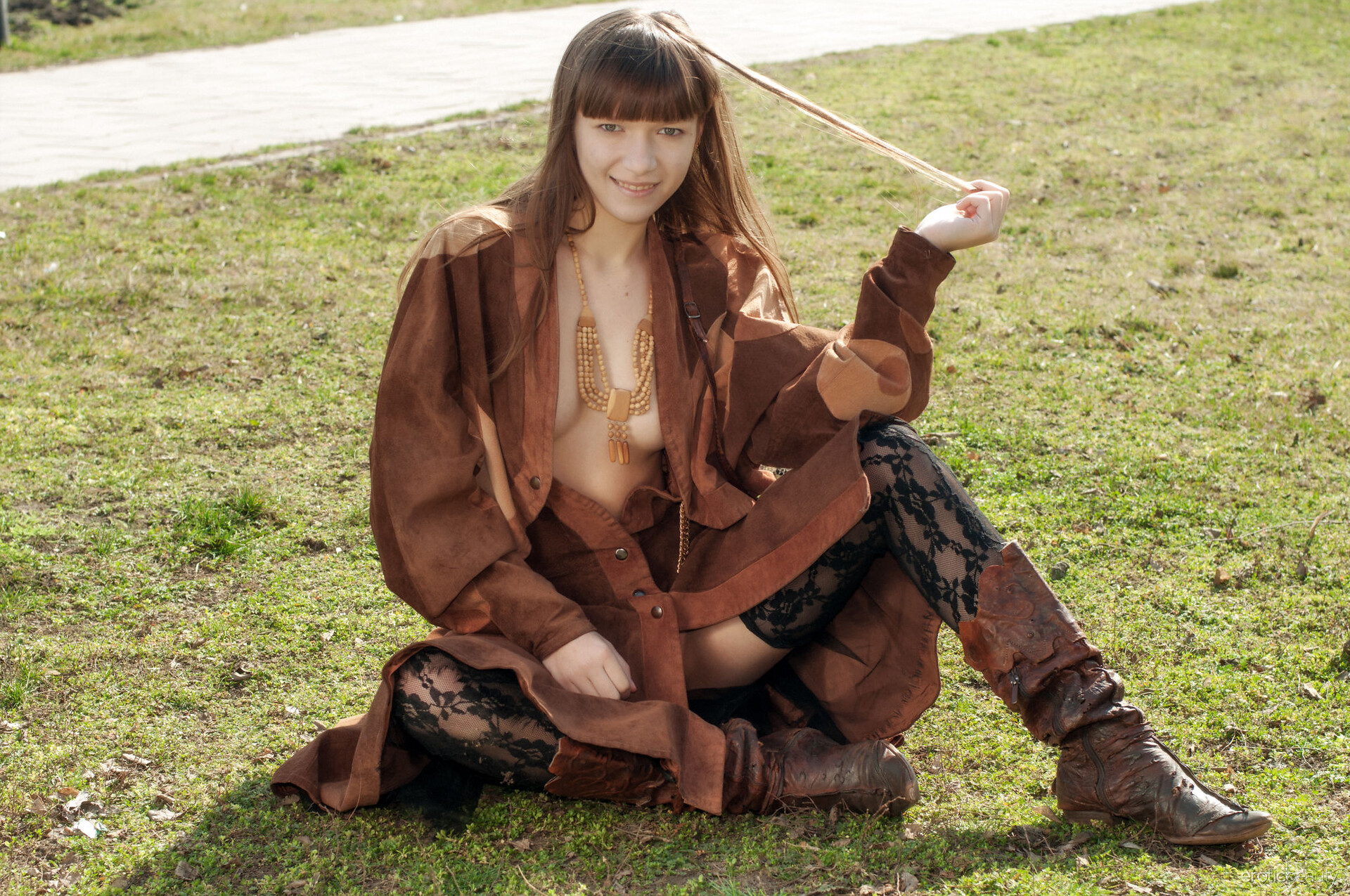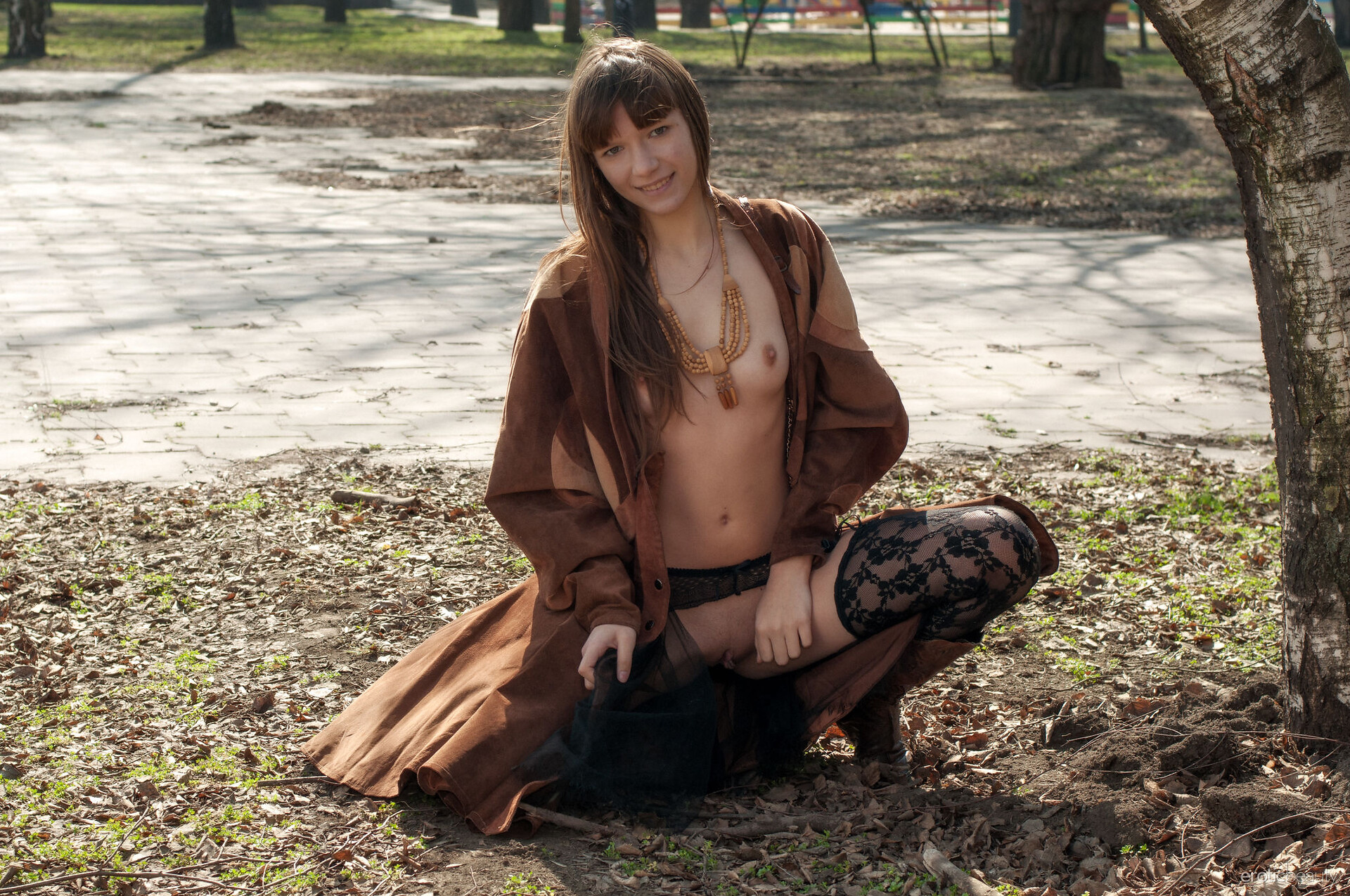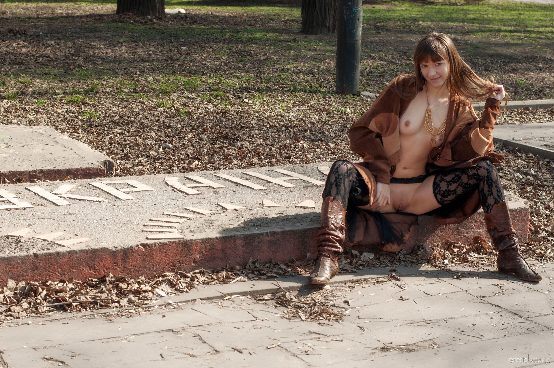 Big tit curvy babe posing outdoor in lingerie - Jo Paul - Art-Lingerie.com