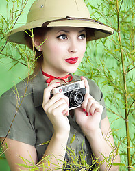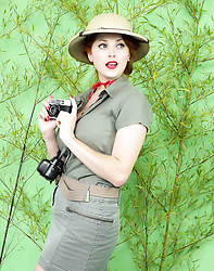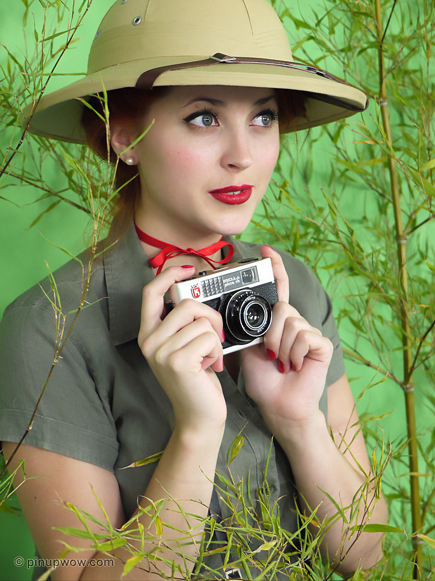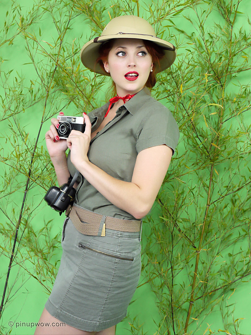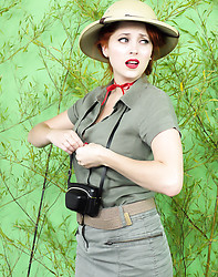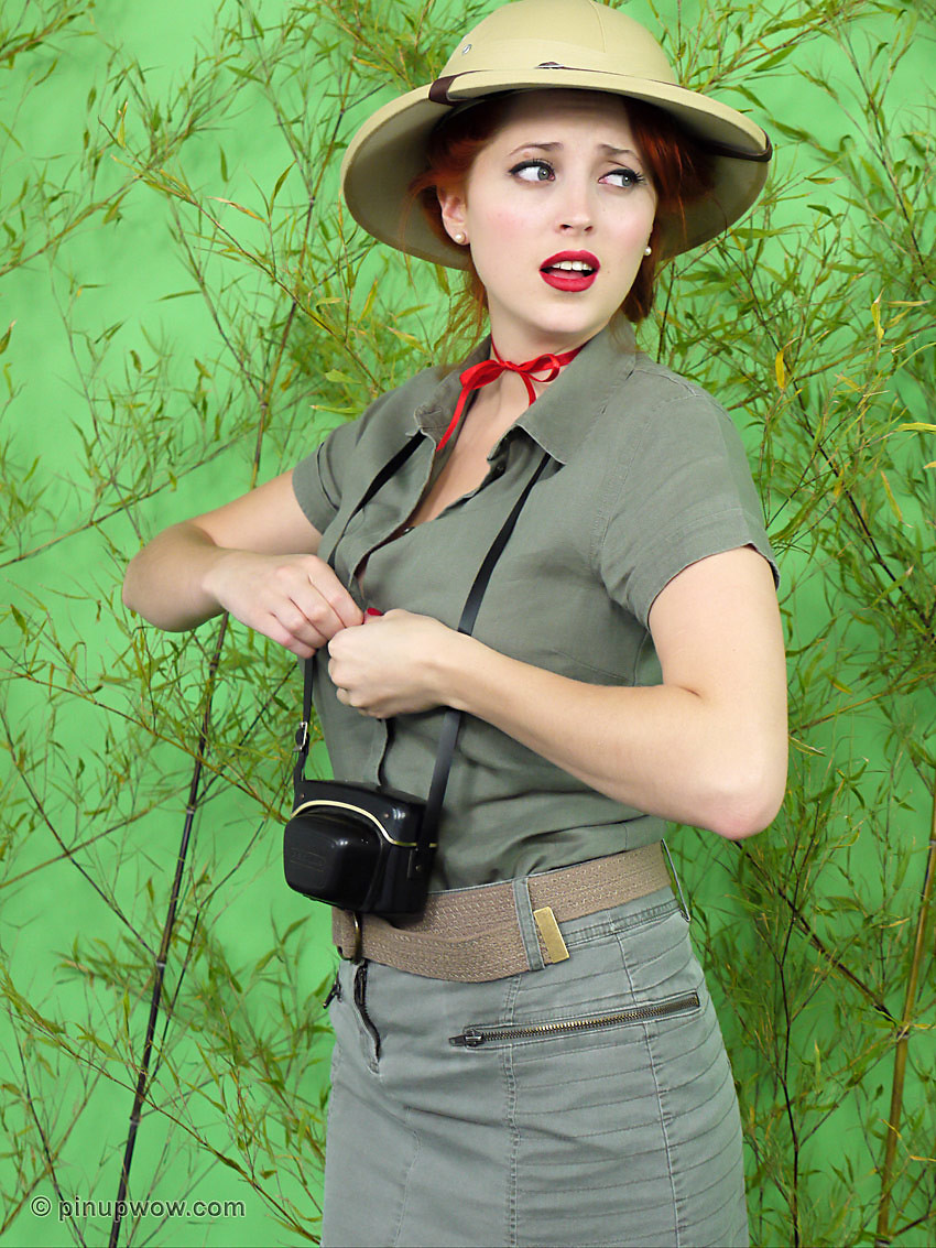 Busty redhead loses her clothes in jungle