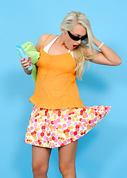 Beautiful blonde Lucy-Anne Brooks finds a secluded spot on beach before stripping to sunbathe.