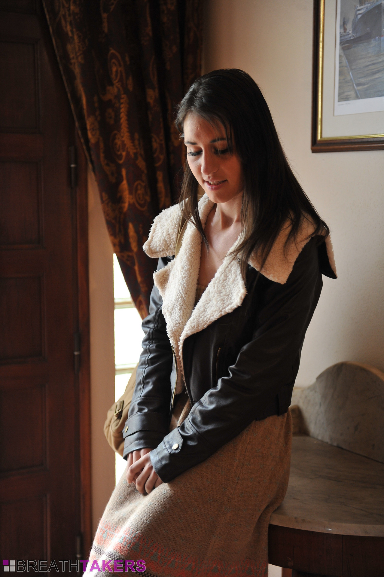 British office girl Theo strips down to her stockings