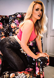 Blonde hottie Stephanie in black sensual nylons and sexy outfit