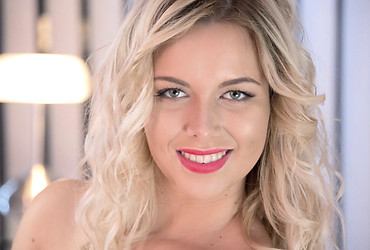 Blonde hottie Stephanie in black sensual nylons and sexy outfit