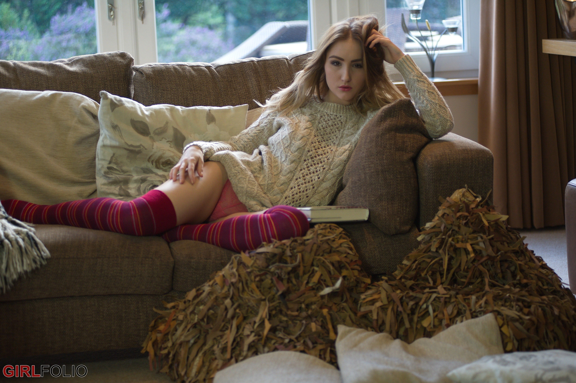 Fur Fantasy. Danica in stockings surrounded by fur